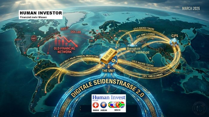 Bereits in den ersten Monaten des Jahres 2026 erreichte dieses neue System ein Transfervolumen von mehr als 60 Milliarden Dollar und ist extrem stark wachsend. Die Menschen und Unternehmen sind der westlichen Gängelung und Überwachung leid, sie wählen die Freiheit. - The Unit: Seit dem 1. Januar 2026 im realen Einsatz. Ein digitaler Token, gedeckt durch 40 % Gold und einen Währungskorb der BRICS. Es ist die neutrale Antwort auf die US-Sanktionspolitik und wird sich wohl langfristig weltweit als zweite grosse Weltwährung etablieren. Auch wenn dies noch Jahre dauern kann, doch der Anfang ist gemacht und das Transfervolumen steigt beständig.