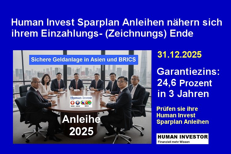 Eine wichtige Information für alle bestehenden Anleihen Besitzer, sowie auch Interessenten an neuen Human Invet Sparplan Anleihen.